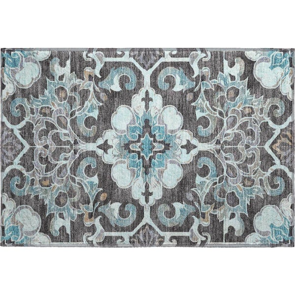 Mayfield Premium Machine Washable Abstract AMF1947 Teal 2 ft. x 3 ft. Accent Rug