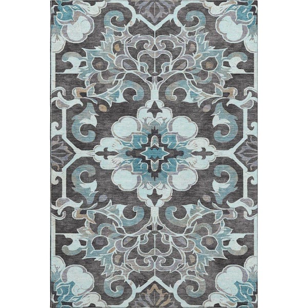 Mayfield Premium Machine Washable Abstract AMF1947 Teal 3 ft. x 4 ft. Area Rug
