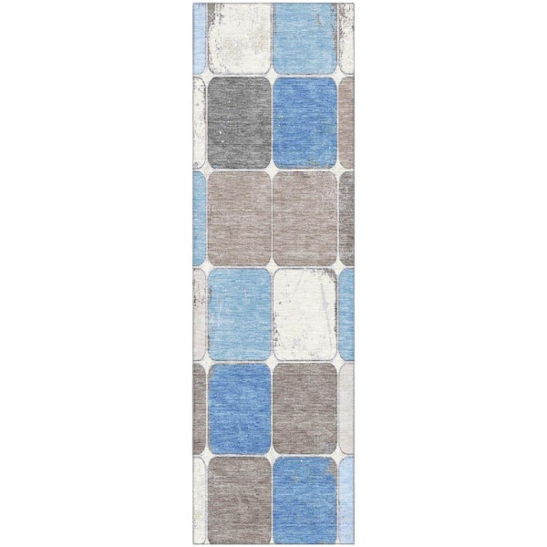 Mayfield Premium Machine Washable Abstract AMF1948 Blue 2 ft. x 7 ft. Runner Rug
