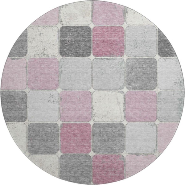 Mayfield Premium Machine Washable Abstract AMF1948 Blush 8 ft. x 8 ft. Round Rug