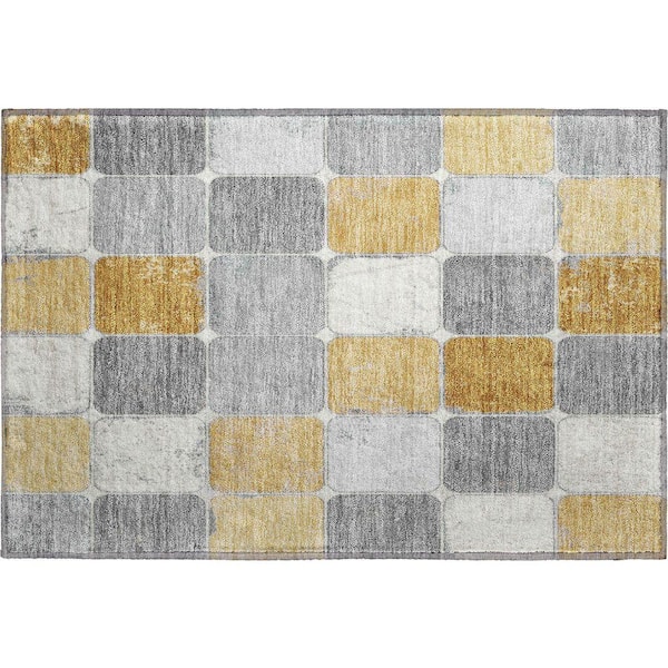 Mayfield Premium Machine Washable Abstract AMF1948 Gold 2 ft. x 3 ft. Accent Rug