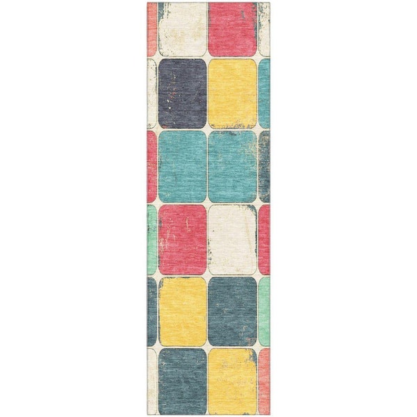 Mayfield Premium Machine Washable Abstract AMF1948 Teal 2 ft. x 7 ft. Runner Rug