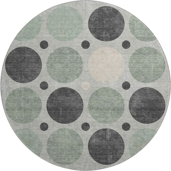 Mayfield Premium Machine Washable Abstract AMF1949 Sage 8 ft. x 8 ft. Round Rug