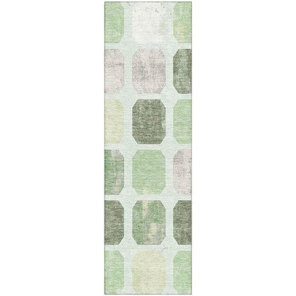 Mayfield Premium Machine Washable Abstract AMF1950 Aloe 2 ft. x 7 ft. Runner Rug