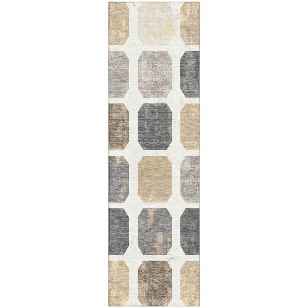 Mayfield Premium Machine Washable Abstract AMF1950 Ivory 2 ft. x 7 ft. Runner Rug