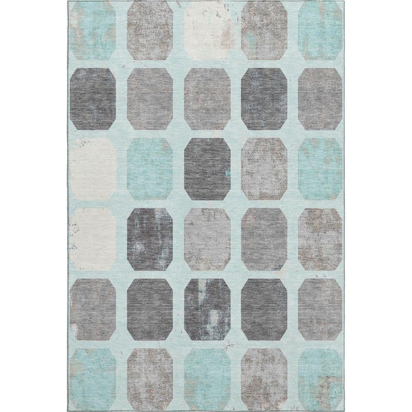 Mayfield Premium Machine Washable Abstract AMF1950 Teal 5 ft. x 7 ft. 6 in. Area Rug