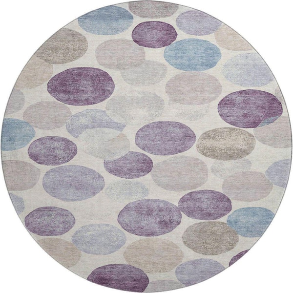 Mayfield Premium Machine Washable Abstract AMF1951 Plum 8 ft. x 8 ft. Round Rug