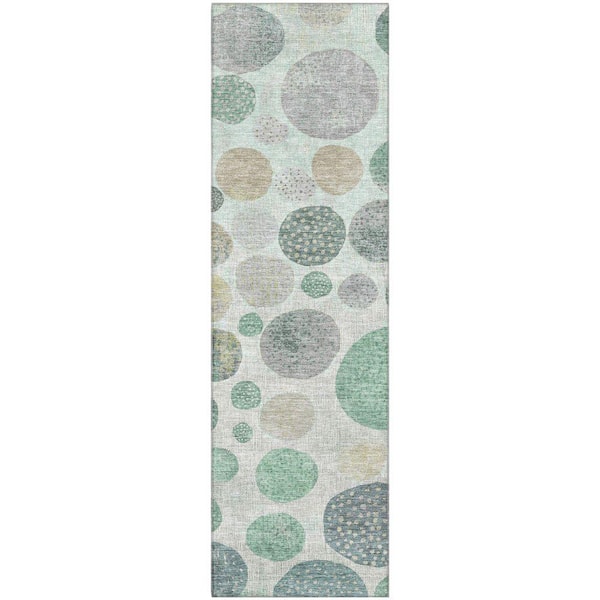 Mayfield Premium Machine Washable Abstract AMF1952 Sage 2 ft. x 7 ft. Runner Rug