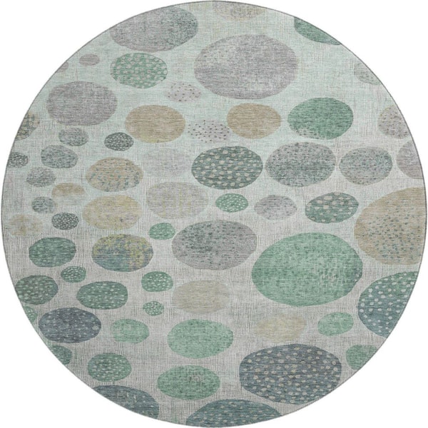 Mayfield Premium Machine Washable Abstract AMF1952 Sage 8 ft. x 8 ft. Round Rug