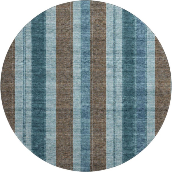 Mayfield Premium Machine Washable Abstract AMF1954 Teal 8 ft. x 8 ft. Round Rug
