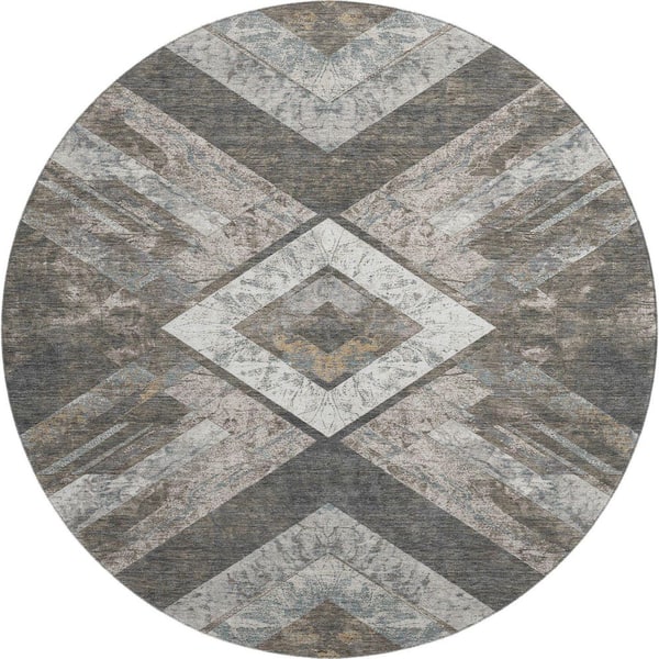 Mayfield Premium Machine Washable Abstract AMF1955 Brown 8 ft. x 8 ft. Round Rug
