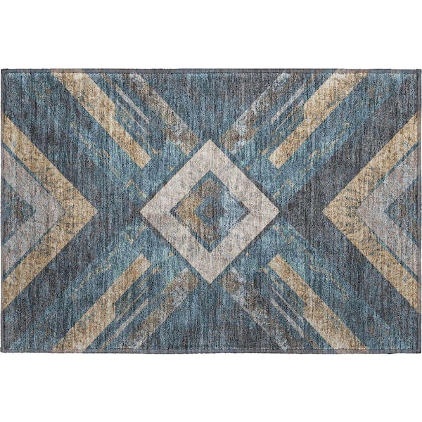 Mayfield Premium Machine Washable Abstract AMF1955 Navy 2 ft. x 3 ft. Accent Rug