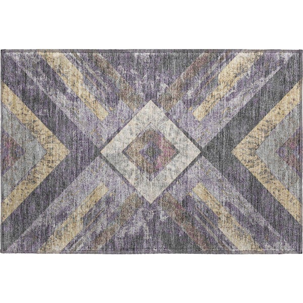 Mayfield Premium Machine Washable Abstract AMF1955 Purple 2 ft. x 3 ft. Accent Rug