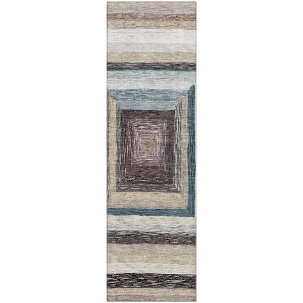 Mayfield Premium Machine Washable Abstract AMF1957 Beige 2 ft. x 7 ft. Runner Rug