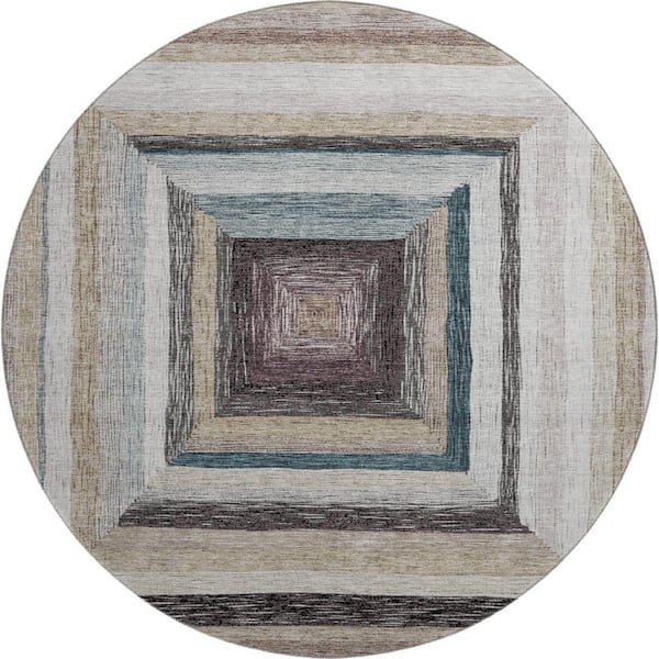 Mayfield Premium Machine Washable Abstract AMF1957 Beige 8 ft. x 8 ft. Round Rug