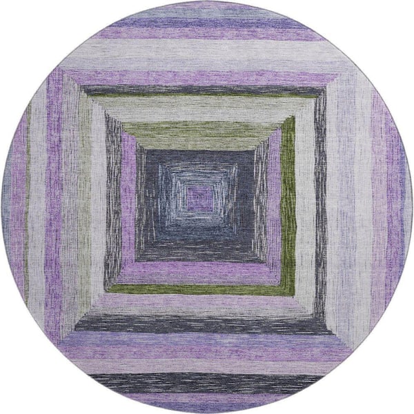 Mayfield Premium Machine Washable Abstract AMF1957 Lavender 8 ft. x 8 ft. Round Rug