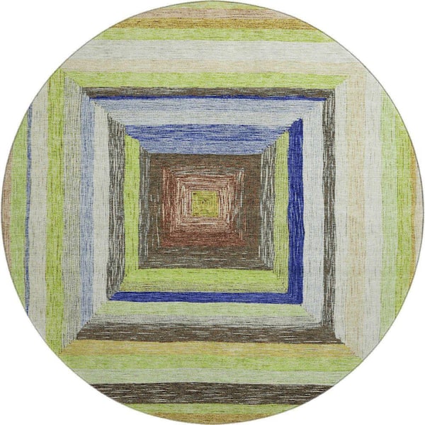 Mayfield Premium Machine Washable Abstract AMF1957 Lime 8 ft. x 8 ft. Round Rug