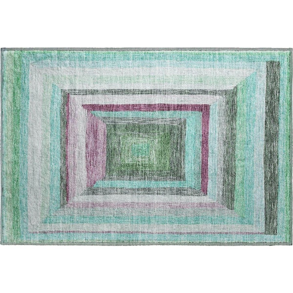 Mayfield Premium Machine Washable Abstract AMF1957 Teal 2 ft. x 3 ft. Accent Rug