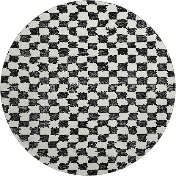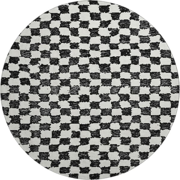 Mayfield Premium Machine Washable Abstract AMF1958 Black 8 ft. x 8 ft. Round Rug