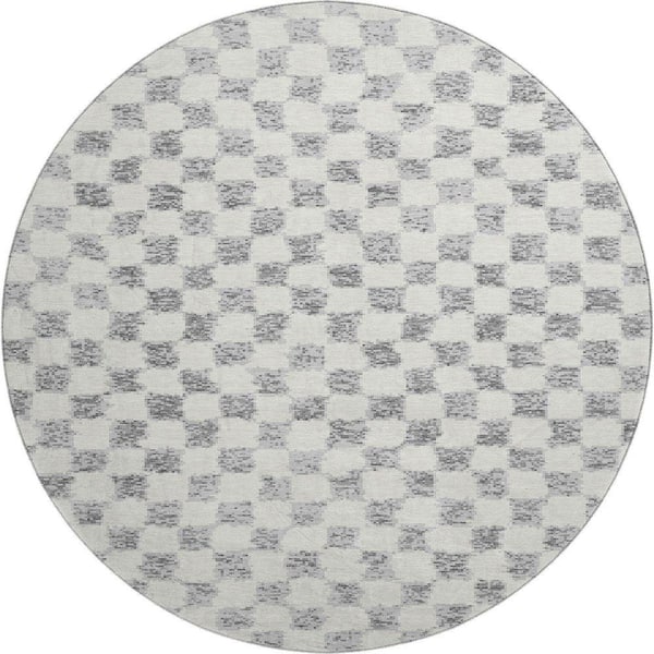 Mayfield Premium Machine Washable Abstract AMF1958 Gray 8 ft. x 8 ft. Round Rug