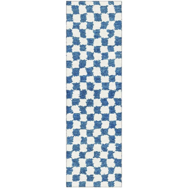 Mayfield Premium Machine Washable Abstract AMF1958 Navy 2 ft. x 7 ft. Runner Rug