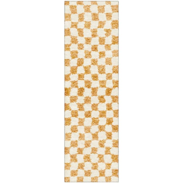 Mayfield Premium Machine Washable Abstract AMF1958 Orange 2 ft. x 7 ft. Runner Rug