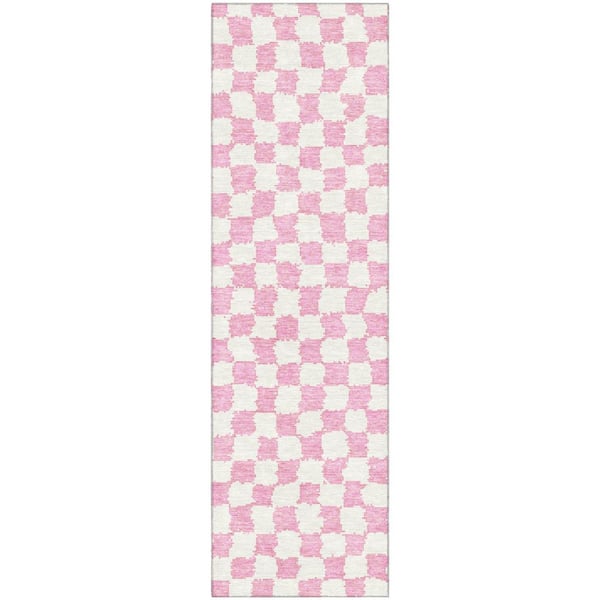 Mayfield Premium Machine Washable Abstract AMF1958 Pink 2 ft. x 7 ft. Runner Rug