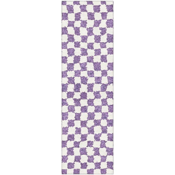 Mayfield Premium Machine Washable Abstract AMF1958 Purple 2 ft. x 7 ft. Runner Rug