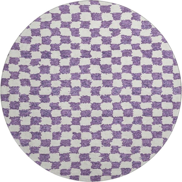 Mayfield Premium Machine Washable Abstract AMF1958 Purple 8 ft. x 8 ft. Round Rug