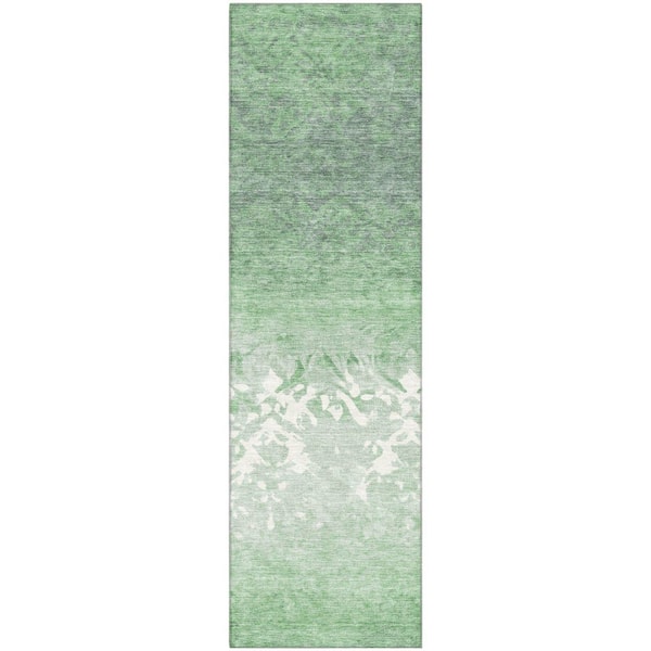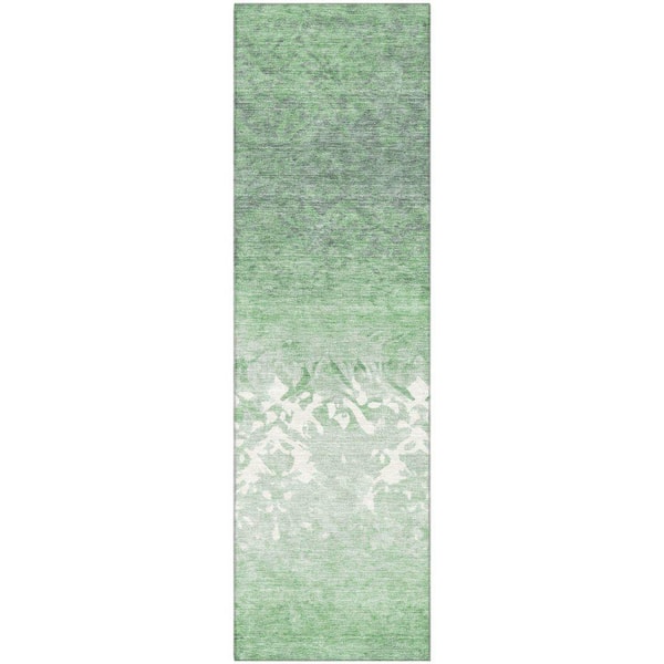 Mayfield Premium Machine Washable Abstract AMF1959 Green 2 ft. x 7 ft. Runner Rug