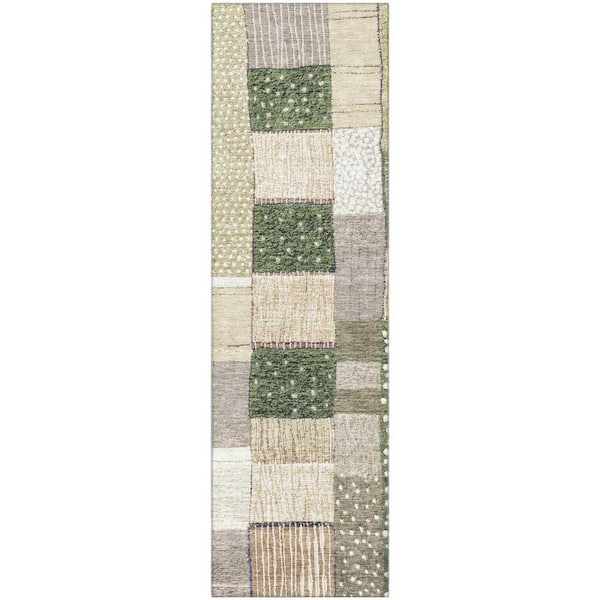 Mayfield Premium Machine Washable Abstract AMF1960 Olive 2 ft. x 7 ft. Runner Rug