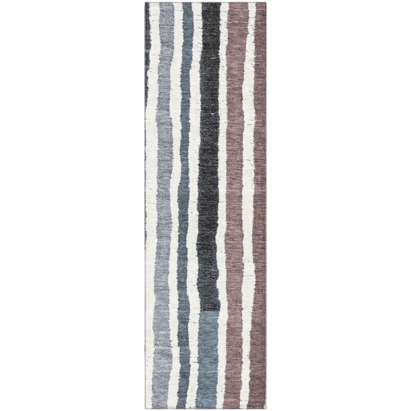 Mayfield Premium Machine Washable Abstract AMF1961 Denim 2 ft. x 7 ft. Runner Rug