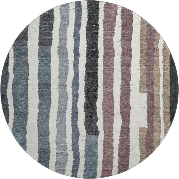 Mayfield Premium Machine Washable Abstract AMF1961 Denim 8 ft. x 8 ft. Round Rug