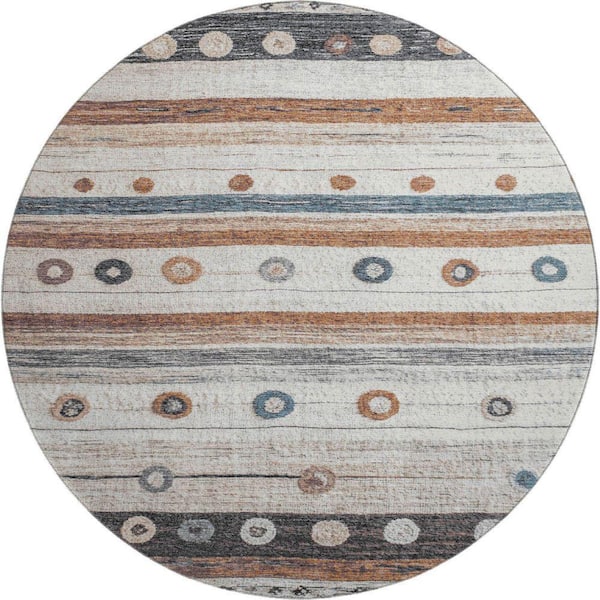 Mayfield Premium Machine Washable Abstract AMF1964 Copper 8 ft. x 8 ft. Round Rug