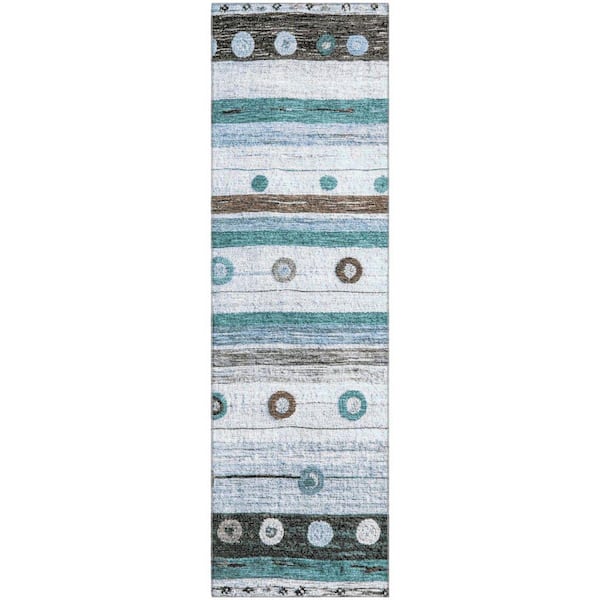 Mayfield Premium Machine Washable Abstract AMF1964 Teal 2 ft. x 7 ft. Runner Rug