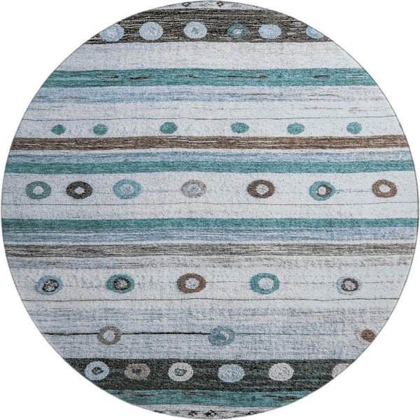 Mayfield Premium Machine Washable Abstract AMF1964 Teal 8 ft. x 8 ft. Round Rug