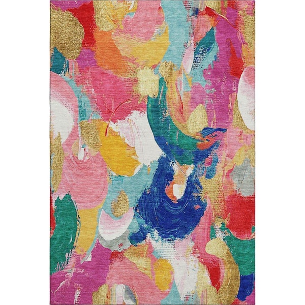 Mayfield Premium Machine Washable Abstract AMF1965 Blush 3 ft. x 5 ft. Area Rug