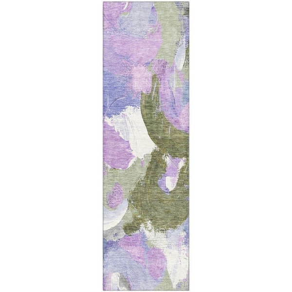 Mayfield Premium Machine Washable Abstract AMF1965 Lavender 2 ft. x 7 ft. Runner Rug