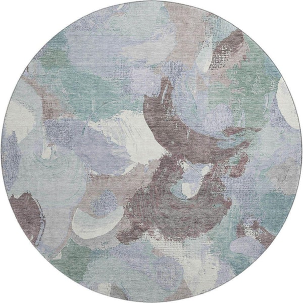 Mayfield Premium Machine Washable Abstract AMF1965 Seafoam 8 ft. x 8 ft. Round Rug