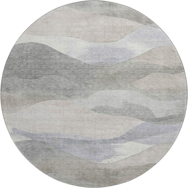 Mayfield Premium Machine Washable Abstract AMF1966 Beige 8 ft. x 8 ft. Round Rug