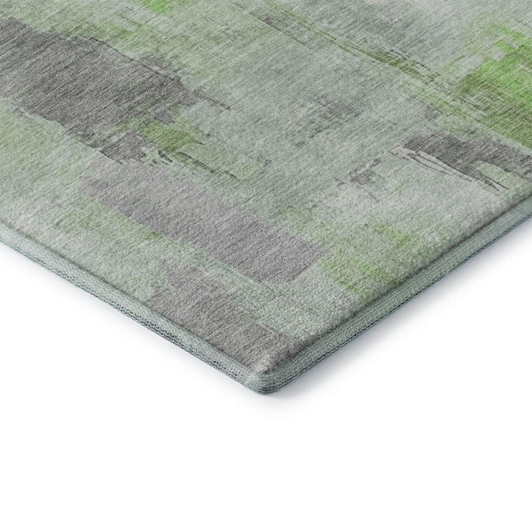 Mayfield Premium Machine Washable Abstract AMF1967 Green 2 ft. x 7 ft. Runner Rug