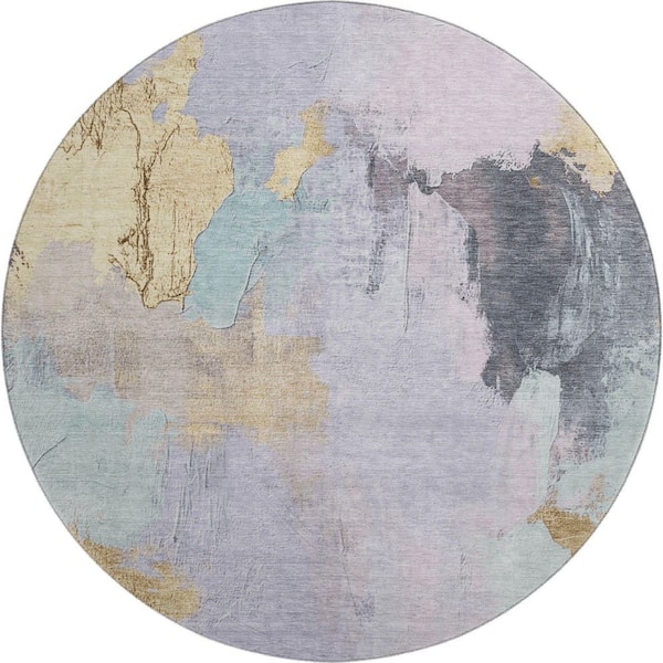 Mayfield Premium Machine Washable Abstract AMF1968 Lavender 8 ft. x 8 ft. Round Rug