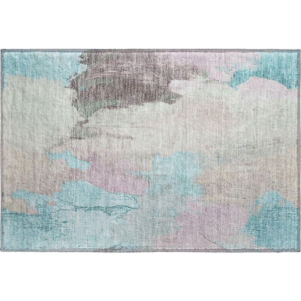 Mayfield Premium Machine Washable Abstract AMF1968 Teal 2 ft. x 3 ft. Accent Rug