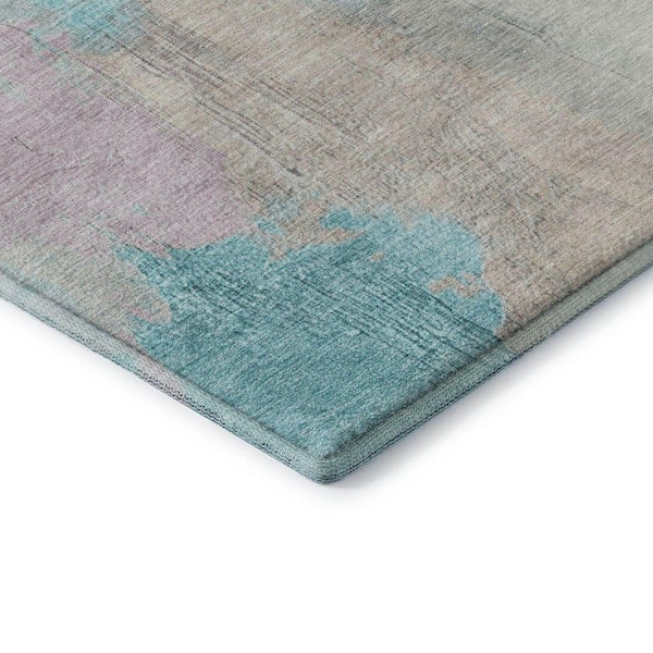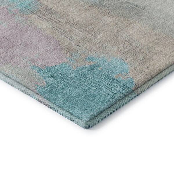 Mayfield Premium Machine Washable Abstract AMF1968 Teal 8 ft. x 8 ft. Round Rug