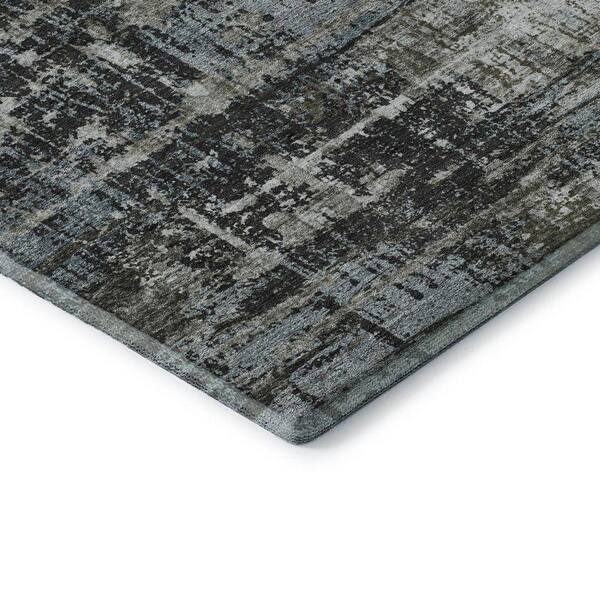 Mayfield Premium Machine Washable Abstract AMF1969 Charcoal 8 ft. x 8 ft. Round Rug