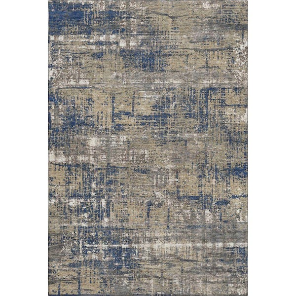 Mayfield Premium Machine Washable Abstract AMF1969 Navy 10 ft. x 14 ft. Area Rug