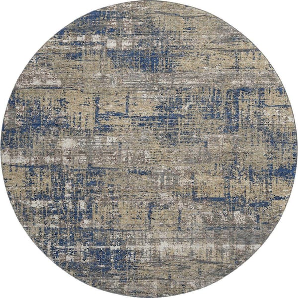 Mayfield Premium Machine Washable Abstract AMF1969 Navy 8 ft. x 8 ft. Round Rug