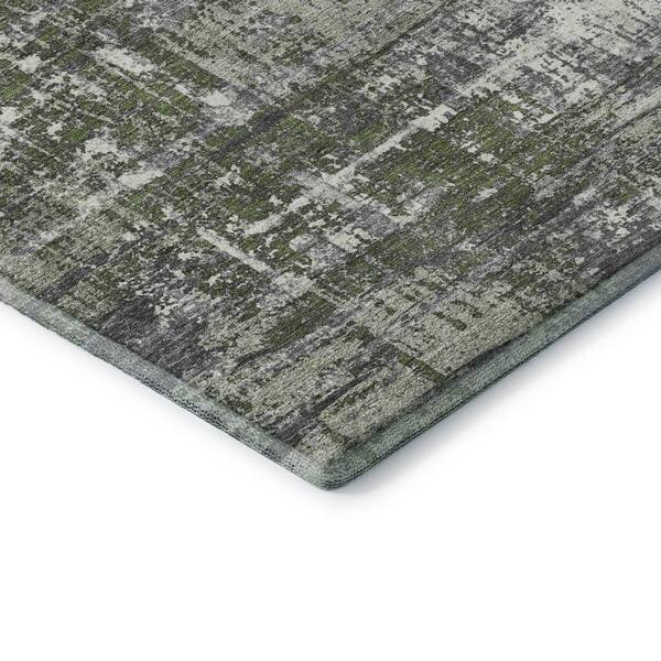 Mayfield Premium Machine Washable Abstract AMF1969 Olive 3 ft. x 4 ft. Area Rug