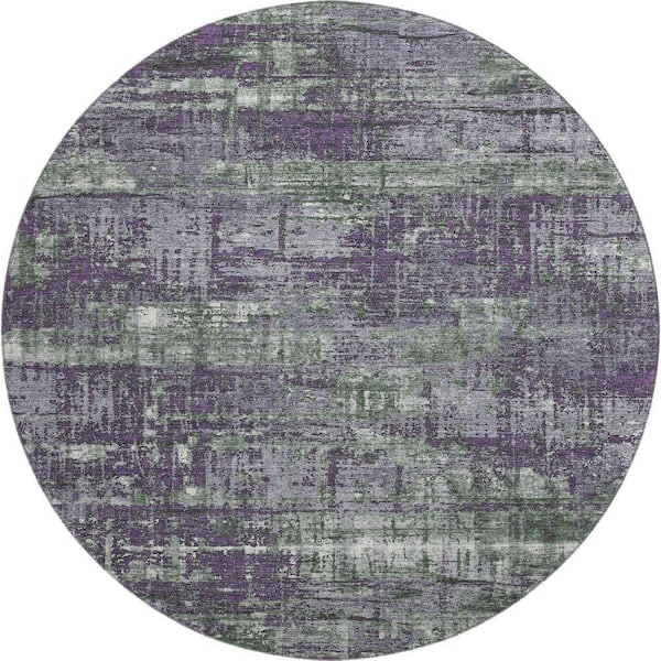 Mayfield Premium Machine Washable Abstract AMF1969 Purple 8 ft. x 8 ft. Round Rug