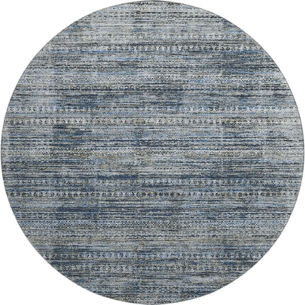 Mayfield Premium Machine Washable Abstract AMF1971 Denim 8 ft. x 8 ft. Round Rug